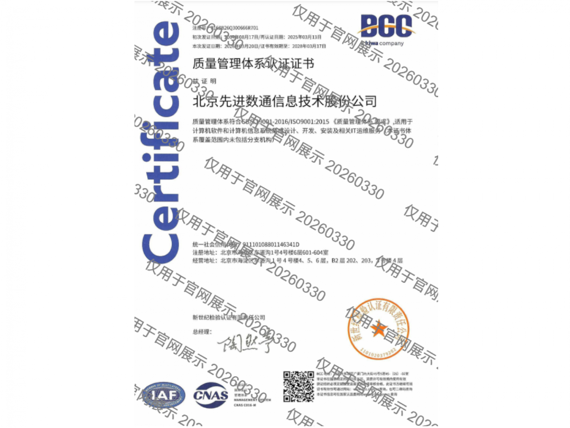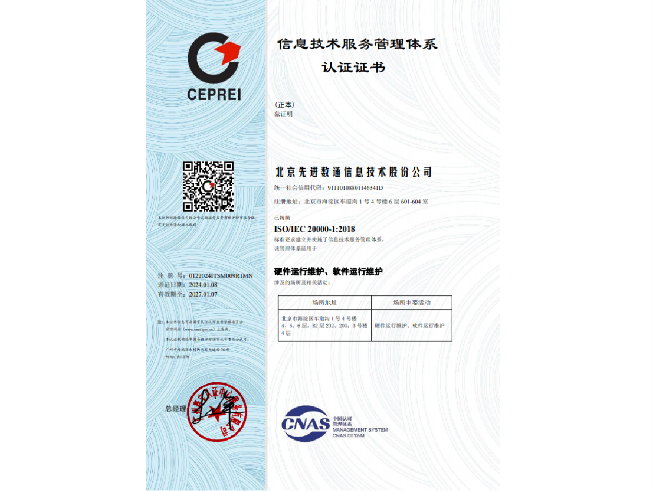 • ISO20000信息技术服务管理体系认证