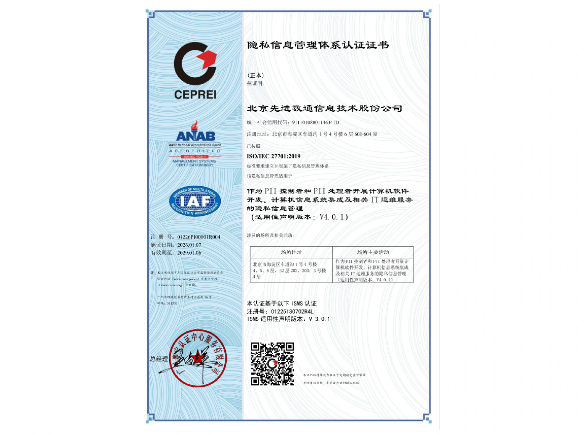 • ISO27701隐私信息管理体系认证